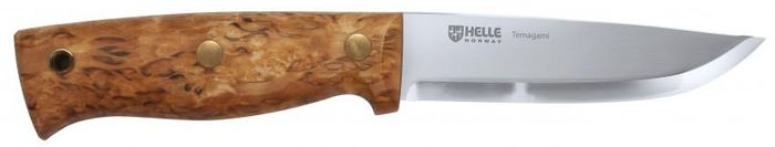 - HELLE TEMAGAMI 110MM BLADE SANDVIK 14C28N CURLY BIRCH HANDLE