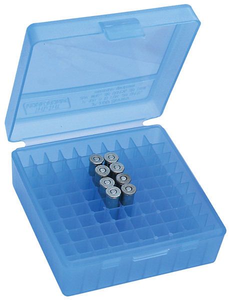 - MTM 100RND HANDGUN AMMO BOX 44MAG 44SPL 45LC CLEAR BLUE