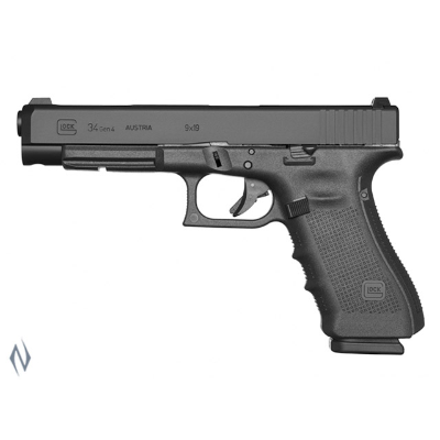 Tactical & Practical - Obtaining the greatest accuracy for target engagement was the decisive reason for the development of the GLOCK 34 with extended barrel, greater slide dimensions and long distance between the sights. This highly-accurate pistol has found widespread use as a competitive pistol for IPSC. SAFE, SIMPLE, FAST GLOCK Pistols are among the safest pistols ever designed with no user action required to render the three internal safeties automatically safe. GLOCK Pistols have the lowest number of components and controls making it both simple to train on and simple to maintain. GLOCK Pistols have no encumbering parts to slow the speed of acquiring the target. FEATURES Caliber: 9mm Mag Capacity: 10 Barrel length: 135mm Weight: 735g "Safe Action" system Durable exterior finish Cold hammer forged barrel Durability Reliability Lightweight The GLOCK Gen4 offers several additional features over the Gen3. Two additional "snap-on" full-length back-straps (medium and large) for larger hands Easy-to-grip Gen4 RTF (Rough Textured Finish) frame with pointed "pyramids" instead of checkering Less recoil (slower slide velocity) due to the redesigned two-stage recoil spring assembly Twice the recoil-spring rated service life Smallest circumference short-grip frame GLOCK has ever offered Shortest trigger reach GLOCK has ever offered Larger mag catch with improved ergonomics Reversible mag catch (30-second changeover to right side for left-handed shooters) More accurate (tighter lock-up) Fits standard holsters